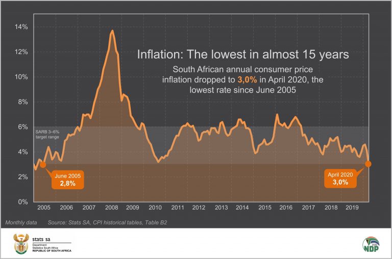 Inflation rate in south africa averaged 8.65 percent from 1968 until 2024, reaching an all time high of 20.70 percent in january of 1986 and a record low of 0.20 percent in.